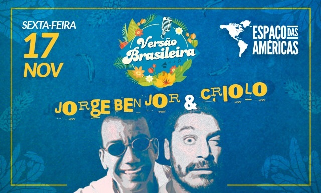 Na sexta-feira, dia 17 de novembro, o Espaço das Américas traz mais uma edição do projeto “Versão Brasileira”, noite que marca o encontro de dois grandes artistas da música brasileira. No dia, quem chega para animar a noite é Criolo e Jorge Ben Jor com 180 minutos de show, divididos entre os artistas.