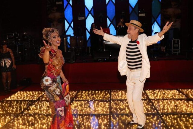 A noite foi repleta de entretenimento, com artistas renomados em diversos estilos musicais. Os presentes foram animados por cantores de pop music, que agitaram a pista de dança, enquanto o samba contagiou a todos com sua batida envolvente. O jazz trouxe encanto ao público e os artistas circenses surpreenderam com suas acrobacias pelo salão da festa. Além disso, personagens da comédia dell’arte arrancaram risadas e garantiram um clima descontraído.