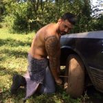 De baixo de sol, e com um cenário natural pra não por defeito, o gato exibiu seu corpo de tirar o fôlego, ajudou nas tarefas da fazenda, e terminou o dia com uma ducha geladinha com direito a descanso no capô de um fusca.